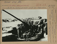 Palebné postavenie 7. roty 501. práporu 200. čs. ľahkého delostreleckého pluku - Východného pri Tobruku. Protilietadlový kanón Mk I Bofors ráže 40 mm s dostrelom 3 600 m. Tobruk - Afrika, začiatok roku 1943.
