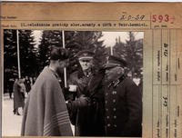Otvorenie 2. celoštátnych pretekov KSTL a slovenskej armády v Tatranskej Lomnici. Na obr. minister Mach pri prehliadke pretekárov.