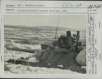 Práporné taktické cvičenie s bojovými streľbami tankového práporu 21. mechanizovanej brigády z Trebišova vo Vojenskom výcvikovom priestore Lešť vo februári 1999. Stredný tank T-55 AM2 v palebnom postavení.