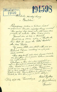 Žiadosť Juliusa Kováčika o prjatie do práce.