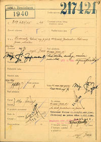 Židovský Eliáš, voj. p. pl. 2, 1917/1939 - prac. služba.