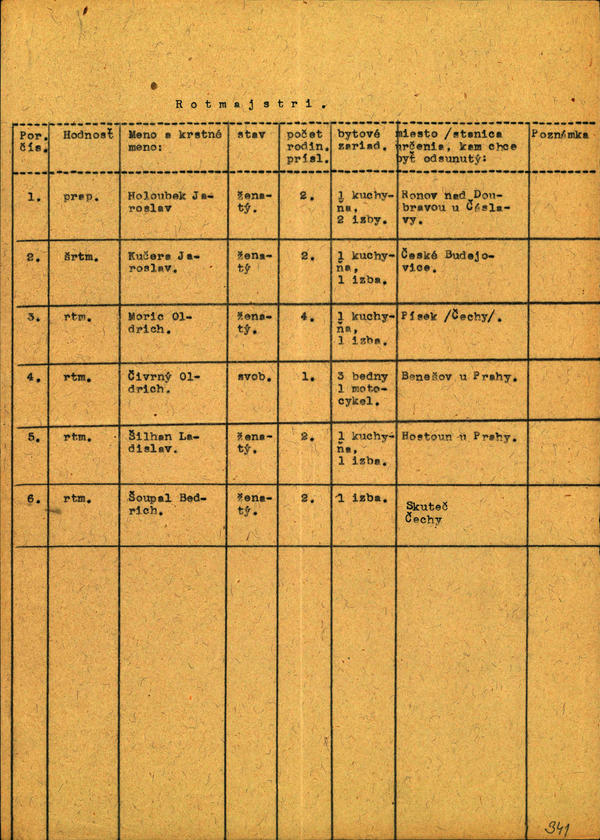 Voj. gažisti a civ. zamestnanci - odsun do historických zemí - zoznam. (200404)