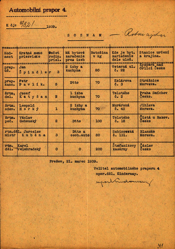 Voj. gažisti a civ. zamestnanci - odsun do historických zemí - zoznam. (200404)