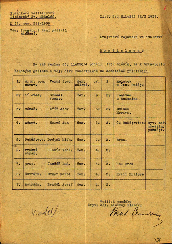 Voj. gažisti a civ. zamestnanci - odsun do historických zemí - zoznam. (200404)