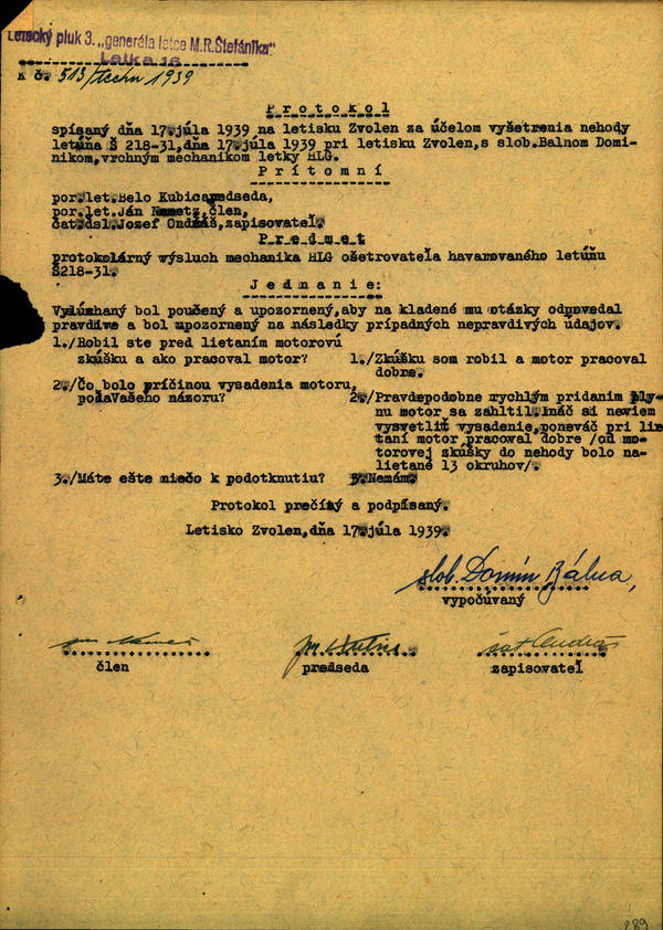 Havária lietadla Š 218.31 s motorom Walter 120 čís. 55 - administratívne prejednanie správkových listov. (106160)