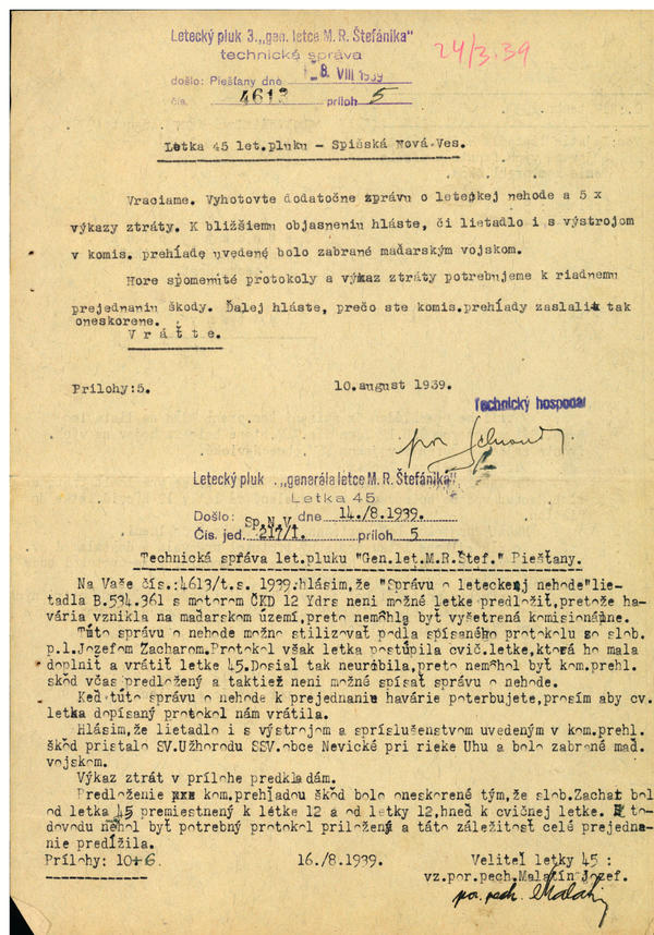 Strata 1 lietadla B 534.361 s motorom ČKD 12 Ydrs.747 - administratívne prejednanie. (113647)