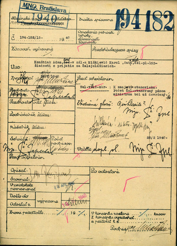 Konštiak Adam, čat. v zál. a Miškievič Karol, čat. v zál. del. pl. 153 - žiadosti o prijatie za ďsl. (194182)