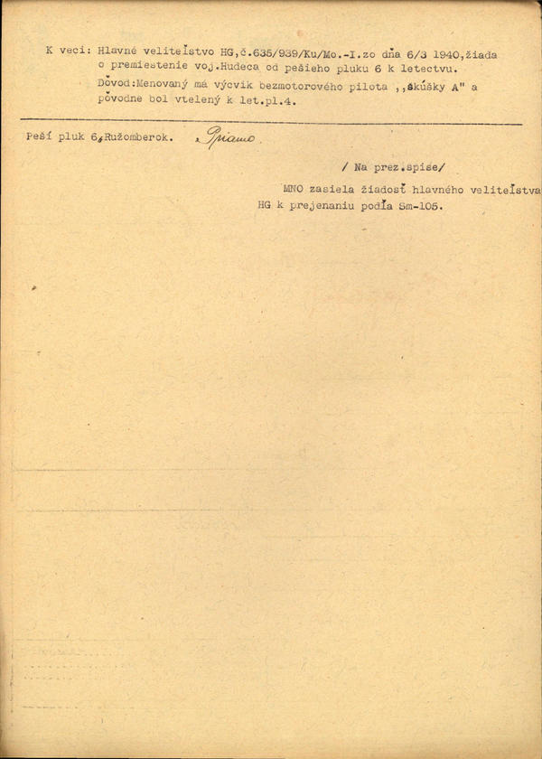 Hudec Ján, voj. p. pl. 6 - premiestnenie. (195540)