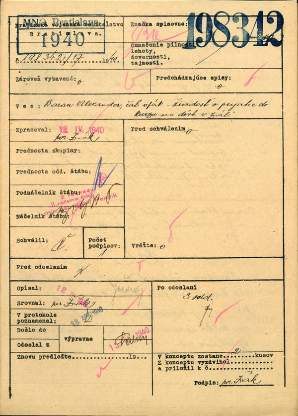 Baran Alexander, čat. v zál. - žiadosť o prijatie do kurzu na dôst. v zál. (198342)