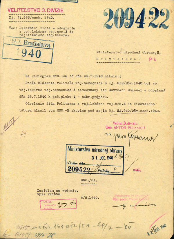Lekárnici židia - odoslanie z voj. lekárne voj. nem. 3 do najbližšieho žid. tábora. (209422)