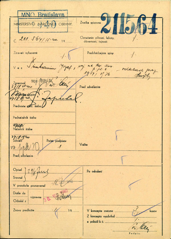 Šimkanin Jozef, voj. na trv. dov. p. pl. 1, 1914/1936 - odklad prez. služby. (211564)