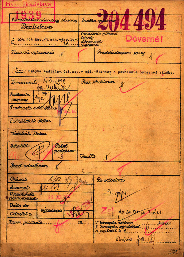 Butyka Ladislav, čat.asp. v zál. - žiadosť o povolenie opravnej skúšky. (204494)
