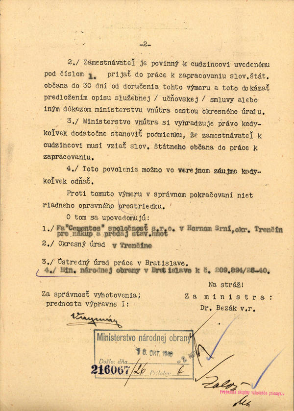 Fa ,,Cementos" spol. s.r.o. v Hornom Srní - žiadosť o povolenie zamestnávať cudzinca. (216067)