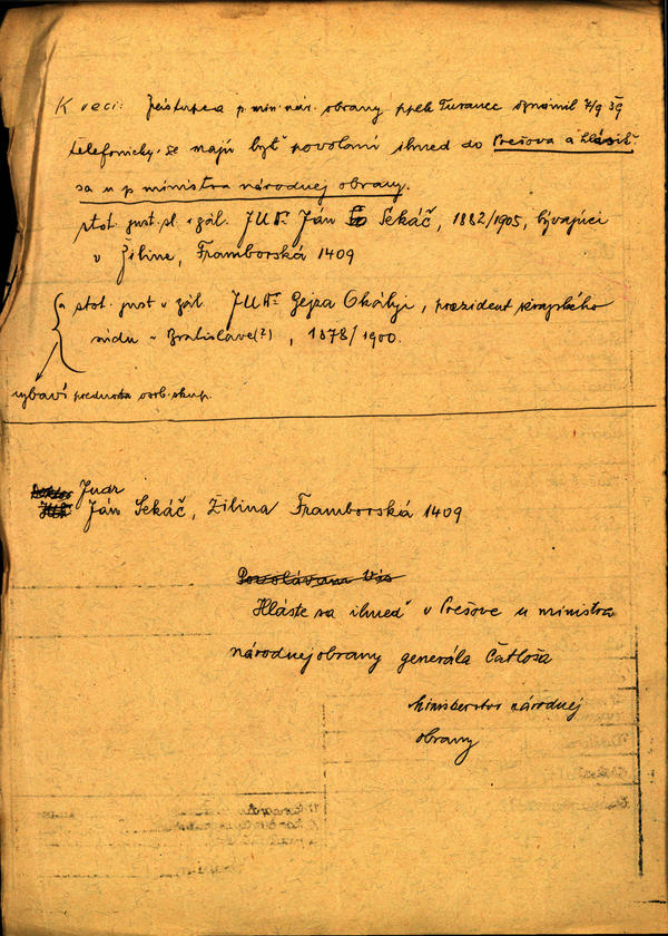 Sekáč Ján, JUDr., stot.just. v zál. - povolanie do Prešova. (206508)