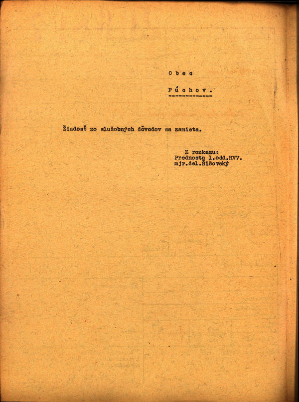 Púchov, obec - žiadosť o sprostenie osôb - zamietnutie. Mareček Robert, voj. v zál., Jablonica - žiadosť o sprostenie od činnej služby. (206897)