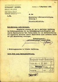 Žiadosť o sprostenie od činnej voj. služby - Dynamit Nobel Bratislava. (207032)
