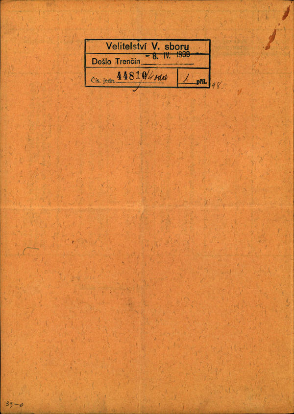 Prvý súpis materiálu nariadený MNO a urgencie - 4. oodel. 1939 v mesiaci apríl. (202068)