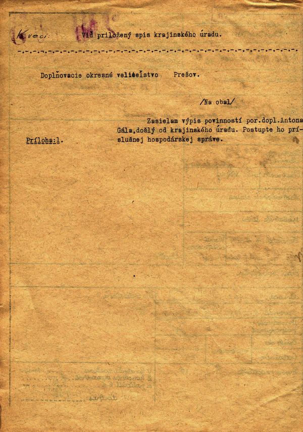 Gál Anton, por. dopl. - výpis povinností. (210103)