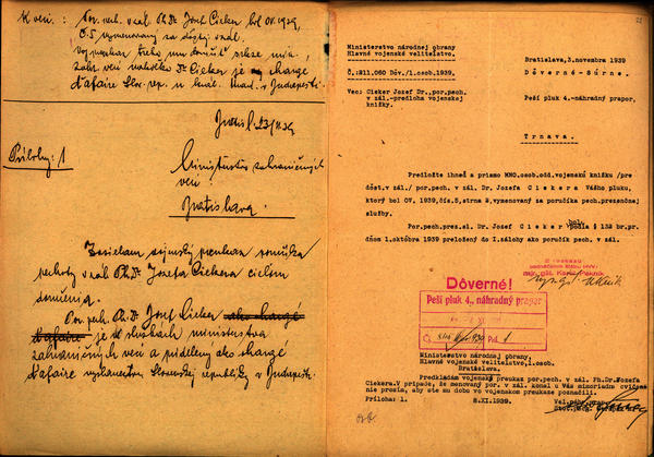 Cieker Josef, PhDr.. por. pech. v zál. - vojenský preukaz / knižka, doručenie. (211520)