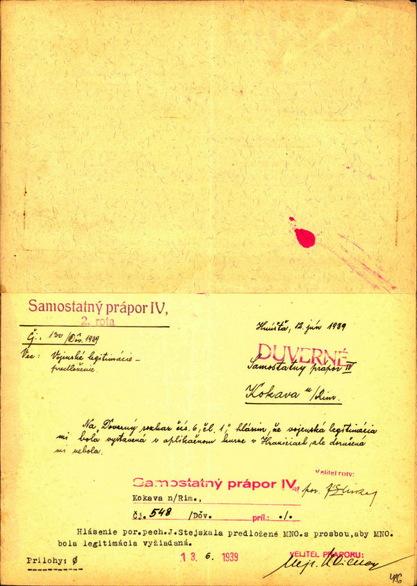 Legitimácia por.pech. Jána Stejskala - vyžiadanie od veliteľstva voj. akadémie. (202309)