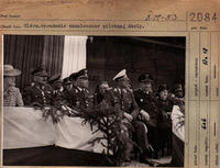 Slávnostné vyradenie absolventov pilotnej školy na letišti v Trenč. Biskupiciach. Na obr. hostia na tribúne. Čaltloš - 3. zľava, Pulanich - 2. zľava