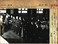 Slávnostný zraz príslušníkov závodných jednotiek Ľudových milícií, ktorý sa konal vrámci osláv 21. výročia víťazstva čs. pracujúceho ľudu. Na obrázku vedúci tajomník MV KSS odovzdáva vyznamenania milicionárom.