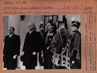 Vyslanec Slovenskej republiky v Rumunsku a Juhoslávii Dr. Ivan Milecz po nástupnej audiencii v Bielom dvore v Belehrade (druhý zľava) Roky 1942 - 1944.
