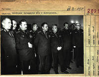 Členovia Predsedníctva ÚV KSS, predseda SNR Ondrej Klokoč /tretí sprava/ a tajomník ÚV KSS Ľudovít Pezlár /štvrtý sprava/ prijali 22. apríla na Bratislavskom hrade predstaviteľov hlavného velenia spojených ozbrojených síl Varšavskej zmluvy, na čele s generálplukovníkom Konstantinom Grigorievičom Kožanovom /tretí zľava/. Predstaviteľov, ktorí sú na návšteve v SSR, sprevádzal veliteľ Východného vojenského okruhu generálporučík Samuel Kodaj /druhý sprava/ a náčelník okruhovej politickej správy Východného vojenského okruhu generálmajor Jozef Kováčik /prvý vpravo/. Prítomný bol generálny konzul ZSSR v Bratislave M. M. Dejev /druhý zľava/ ako aj predstaviteľ velenia sovietskych vojsk v Bratislave plukovník V. F. Jakimiv /prvý zľava/.