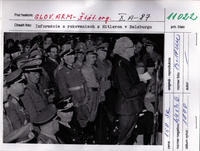 Predseda vlády JUDr. Vojtech Tuka /pri mikrofóne/ informuje predstaviteľov slovenskej a nemeckej armády, štátnych orgánov a zástupcov tlače o výsledkoch rokovania slovenských predstaviteľov /Tiso, Tuka, Mach/ s nemeckým vodcom Adolfom Hitlerom 28.júla 1940 v Salzburgu.