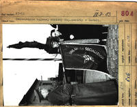 Dekorovanie bojovej zástavy vojenskej posádky v Seredi stuhou Zväzu protifašistických bojovníkov. Posádka má čestné pomenovanie "Útvar československých partizánov."