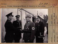 Príchod ríšskeho vodcu mládeže Artura Axmanna do Bratislavy. Na obr. hlavný veliteľ Hlinkovej mládeže A. Macek víta A. Axmanna.