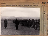 Prezident republiky Dr. Jozef Tiso navštívil výcvikovú rotu v Pezinku. Na obr. prehliadka vojska.