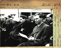 Spomienková slávnosť v Bratislave ku dňu prevzatia moci A. Hitlerom. Zľava krajský vedúci zahr. organizácie NSDAP Rudershausen, nemecký vyslanca Hans E. Ludin, Ing. Karmazin, plukovník von Ohlen, Dr. Endrös.