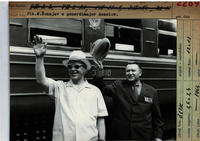 Partiz. velitelia plukovník M. Šukajev /v klobúku/ a generálmajor Asmolov sa lúčia s návštevou slovenských partizánov v Moskve.