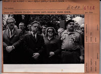 Oslava 30. výročia vzniku partizánskej skupiny Janka KRÁĽA v Malých Karpatoch. Na obr. sprava gen. tajomník ÚV SZPB Peter Dudáš, sov. konzul. S. POLOSKOV, manželka Alexandra Markuša, veliteľa skupiny, a odbojár Karol IVIČIČ.