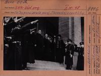 Návrat slovenských štátnikov z Führerovho hlavného stanu. Na obr. pri hraní štátnej hymny.