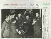 Štátny minister a zástupca ministra národnej obrany čs. exilovej vlády generál Rudolf Viest /prvý zľava/ so skupinou dôstojníkov pri prehliadke produktov čs. tovární vojnovej výroby v Treforeste 18. februára 1943.
