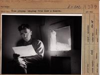 Člen propag. skupiny číta list z domova.