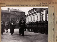 Najvyššie vyznamenanie Vodcu a prezidenta republiky Dr. J. Tisu Adolfom Hitlerom. Na obr. Veľvyslanec Alexander baron von Dörnberg vo funkcii osobitného poverenca A. Hitlera pri prehliadke prezidentskej stráže.