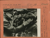 25.4.1945 navštívila vládna delegácia ČSR na čele s K. GOTTWALDOM, ministrom gen. L. SVOBODOM a ministrom URSÍNYM letisko 1. čs. leteckej zmiešanej divízie v POREMBE /v Poľsku/. Druhý zľava minister NO gen. L. SVOBODA. Štvrtý zľava podpredseda vlády K. GOTTWALD. Prvý sprava minister URSÍNY.