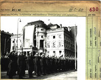 V rámci osláv 5. výročia oslobodenia Bratislavy Sovietskou armádou bol 4. apríla 1950 v Bratislave za účasti vládnych činiteľov odhalený a odovzdaný verejnosti pamätník Sovietskej armády - socha víťazstva. Pohľad na účastníkov slávnosti a nastúpenú jednotku ČSĽA na priestranstve pred ND.