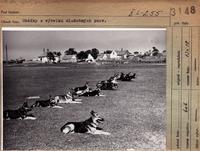 Ukážky z výcviku služobných psov. Na obr. podpredseda vlády minister Mach spolu s hlavným veliteľom žandárstva prizerajú výcviku.