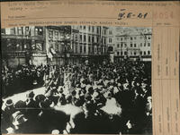 Predseda rady ľudových komisárov Sovietskeho Ruska Vladimír Iljič Lenin- Uljanov /v strede v civile/ na manifestácii na Námestí revolúcie v Moskve 7.novembra 1918.