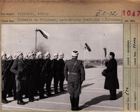 Trojanova partizánska brigáda sa hlási podpredsedovi vlády a predsedovi KSS V. Širokému pri jeho príchode do Partizánskeho.
