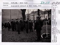 Spomienková slávnosť' k výročiu Malej vojny v Spišskej Novej Vsi 24. marca 1995. Čestná stráž vojakov Armády SR pri symbolickom brezovom dvojkríži s prilbou /pôvodne tam stál pamätník/ na pamiatku obetí bombardovania Spišskej Novej Vsi maďarským letectvom popoludní 24. marca 1939.