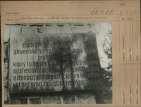 MARTIN - Stráne, okr. Martin. Pamätná doska na kamennom pylóne označujúca horáreň, v ktorej boli položené základy prvého partizánskeho oddielu na území Turca. /Frimlova horáreň/.
