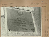 Hoste, okr. Galanta, kraj Západoslovenský. Pamätná tabuľa ČA na kult. dome odhalená na počesť hrdinskej Sovietskej armády, ktorá oslobodila dňa 1.4.1945 našu obec. Vďační občania.