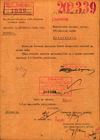 Kovář Leopold, d. zást. poč. - vrátenie prijímacieho listu.