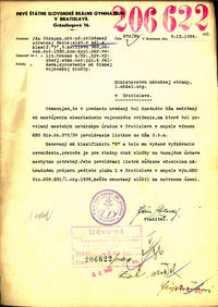 Ján Kvietok, def.spr.štát.ľud. školy v Detve, vojak v zál. Sprostenie od vojenskej služby.