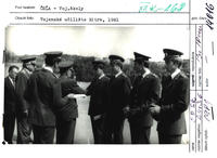 Slávnostné vyradenie 119 absolventov VSOŠ a ich menovanie do hodnosti "rotmajster" vo Vojenskom učilišti Nitra 10.júla 1981. Menovacie dekréty odovzdáva generál Jaško /vpravo/, náčelník učilišťa plk. Ing. Ján Mrva je druhý zľava.